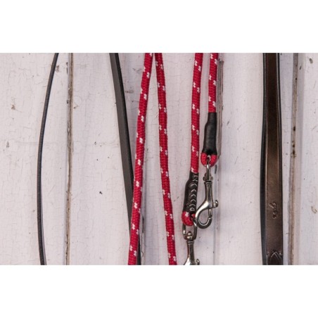 Rênes allemandes cuir lisse/corde rose avec double mousqueton.