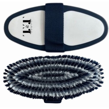 Les poils courts optimisent le brossage des parties sensibles. Cette brosse est munie d'un sanglon en nylon résistant et réglable.