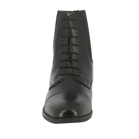Boots en cuir de buffle, doublées de laine synthétique en polyester avec lacets élastiqués.