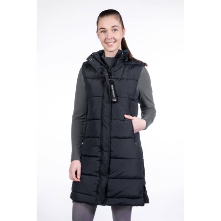 Le gilet long Misty est disponible en différentes couleurs et tailles et fait bonne impression aussi bien dans le manège que dans la vie quotidienne.