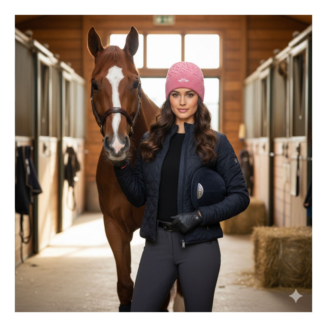 Restez au chaud et élégant en selle avec nos accessoires tricotés à motif de câble. Dotés d'une magnifique broderie lurex avec logo de chevaux et d'une doublure tricotée ton sur ton ultra douce