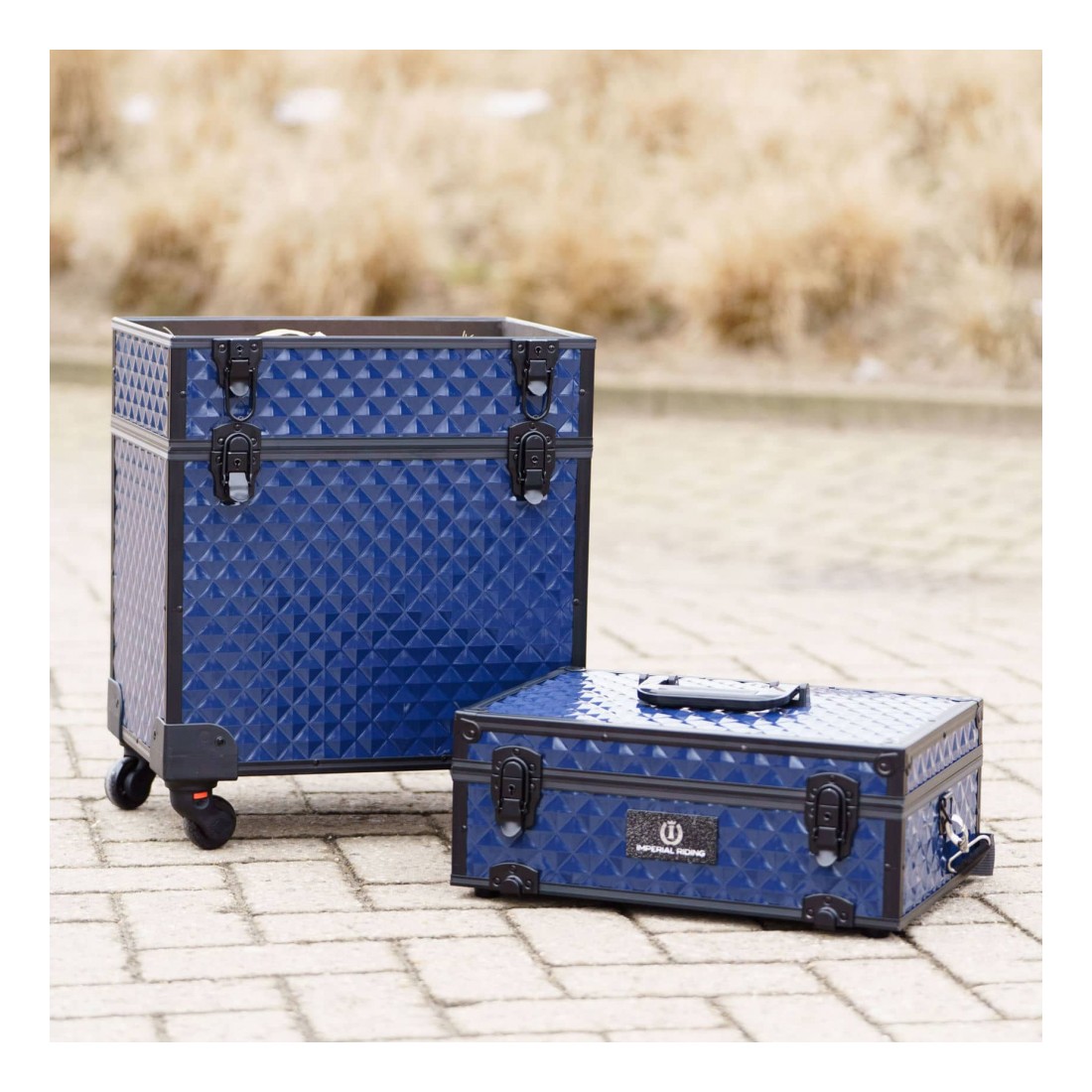 Le design robuste offre une excellente résistance aux chocs, tandis qu’une bandoulière permet une portabilité facile quand rouler n’est pas possible. Cette boîte est parfaite pour organiser tes brosses, produits de soin, accessoires et les transporter avec style — que ce soit en écurie, en concours ou pour les soins à l’extérieur.