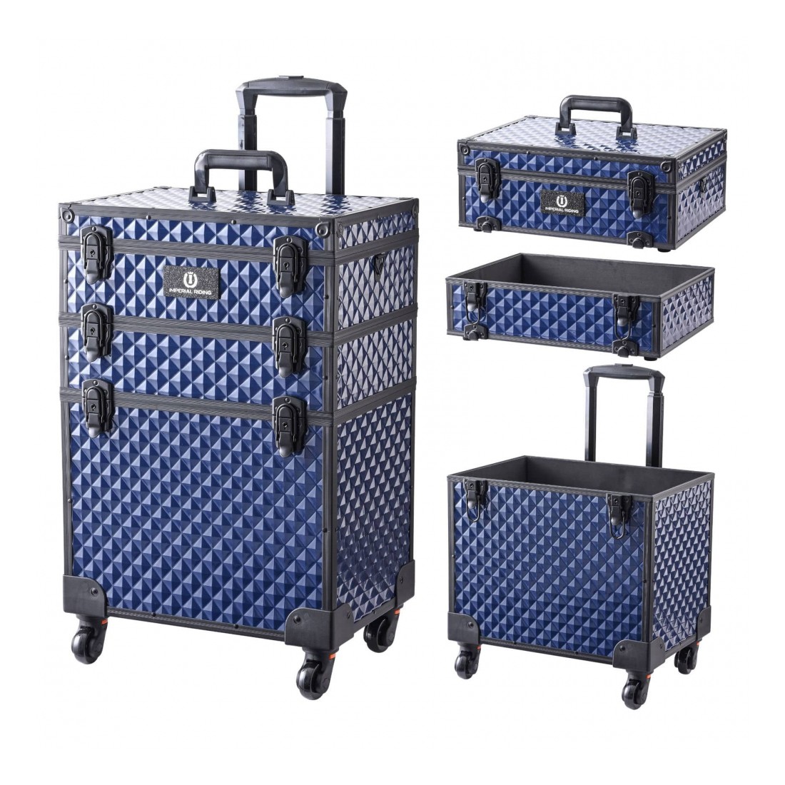 La Grooming Box IRH-StackX Deluxe d’Imperial Riding est une boîte de pansage modulable, pratique et stylée, conçue pour le cavalier moderne. Elle se distingue par sa conception empilable — tu peux ajuster sa hauteur selon tes besoins — et elle est équipée de roues intégrées pour faciliter le déplacement même quand elle est chargée. La partie supérieure fait aussi office de montoir improvisé, très utile pour les chevaux ou les moments de préparation.