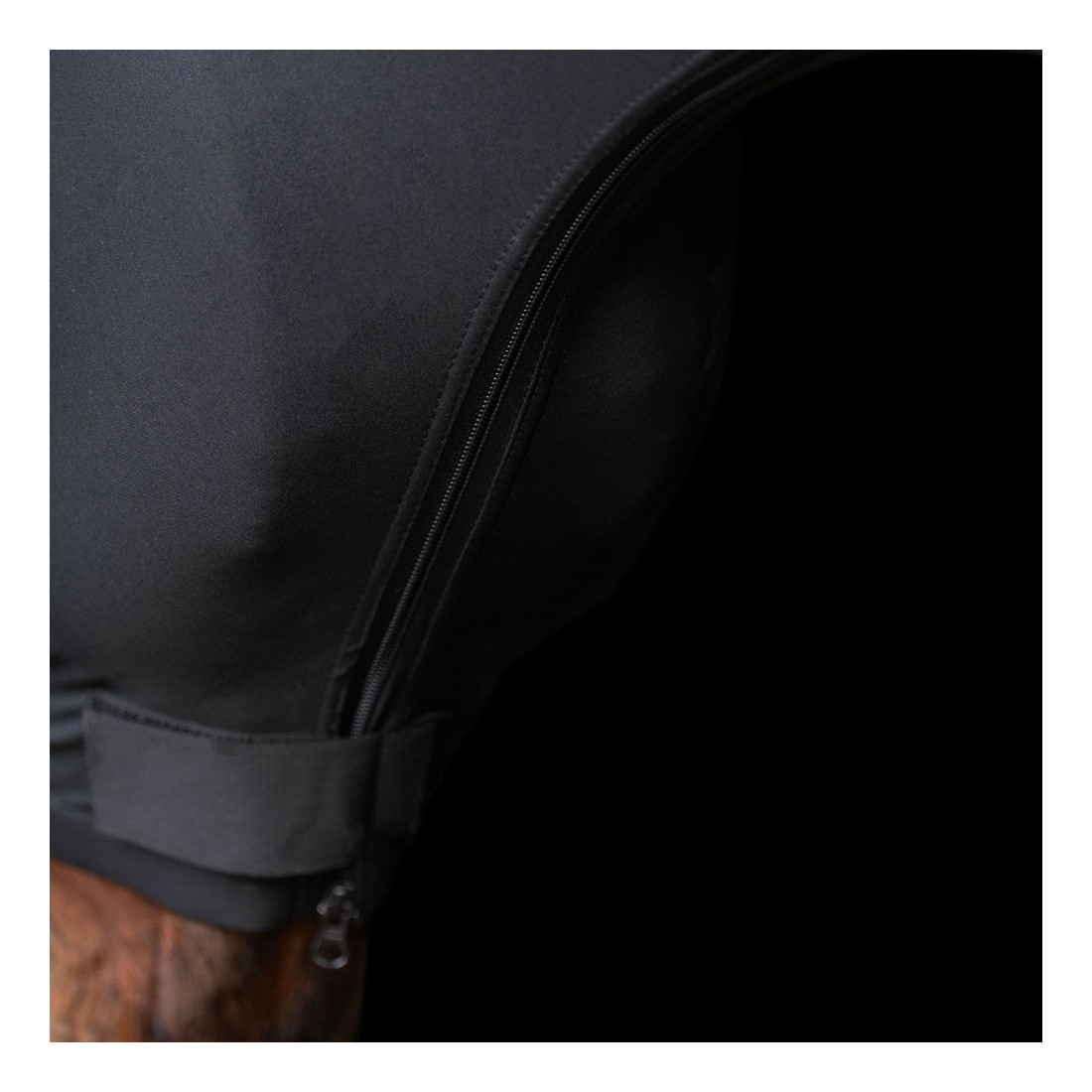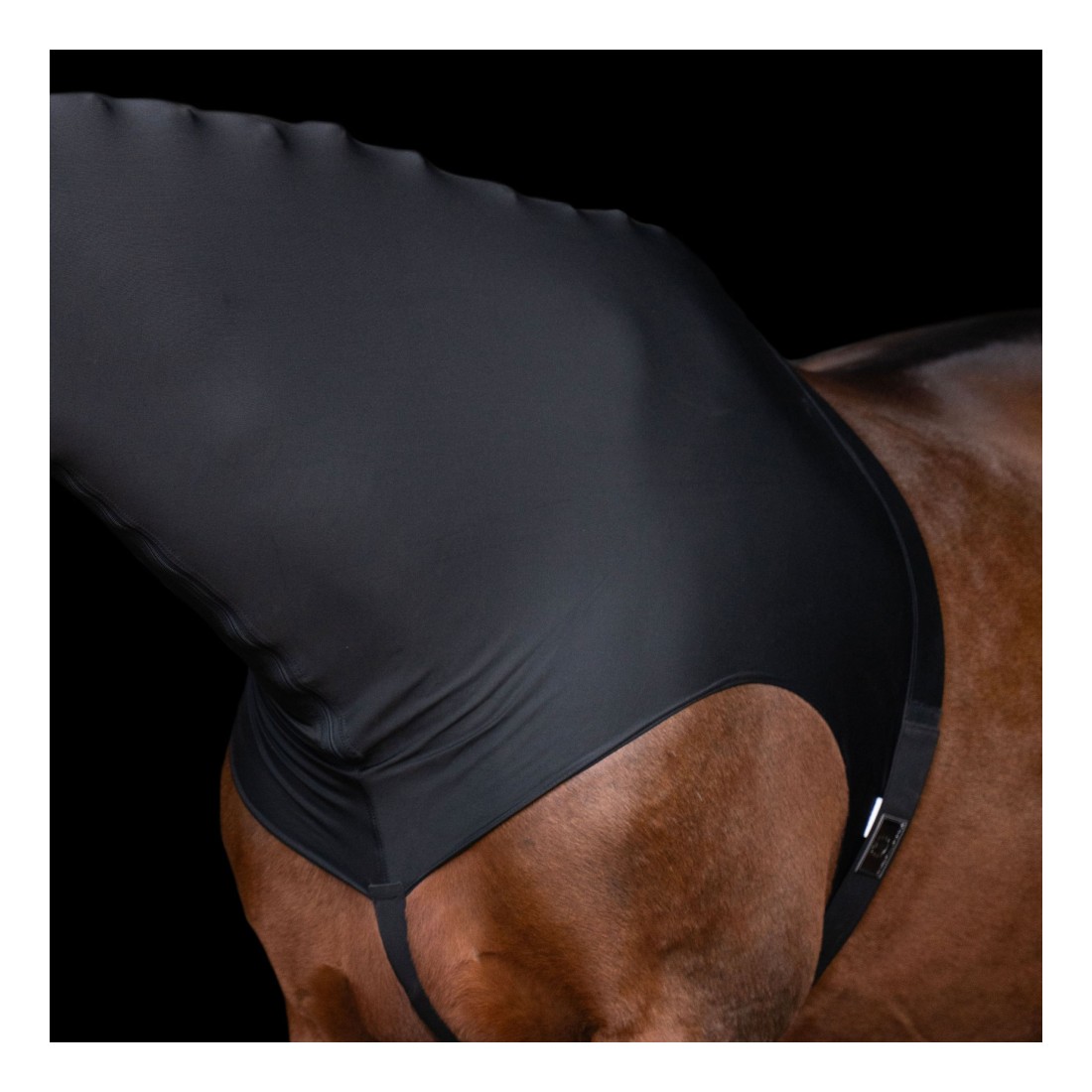 Ajustez-le pour couvrir la zone du poitrail et des épaules avant de mettre la couverture par-dessus.