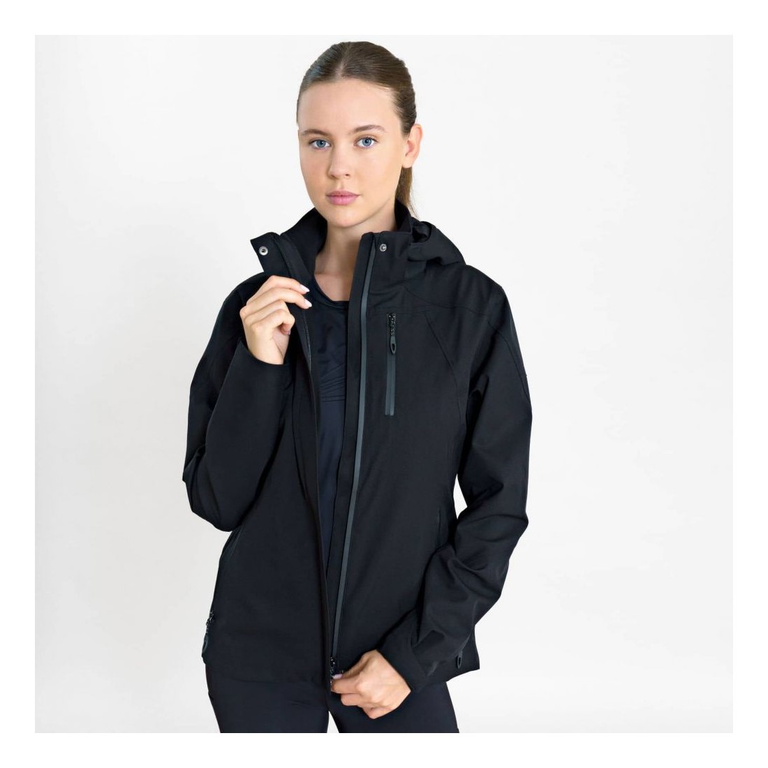 Présentation de la veste ESAmbria, un sommet de style et de protection pour l'équestrienne dédiée. Conçue minutieusement en pensant à la cavalière active, cette veste allie une technologie imperméable inégalée à une esthétique chic et épurée. Que ce soit pour braver les éléments lors d'une session de dressage pluvieuse ou simplement pour une promenade vivifiante autour du manège, l'ESAmbria te garantit une allure impeccable et un confort au sec. Ses coutures entièrement scellées et son coupe-vent derrière la fermeture éclair offrent une protection complète tout en gardant une coupe flatteuse et régulière. La capuche amovible et les poignets ajustables offrent une polyvalence dans toutes les conditions météorologiques, faisant de cette veste un élément essentiel de ton attirail équestre.