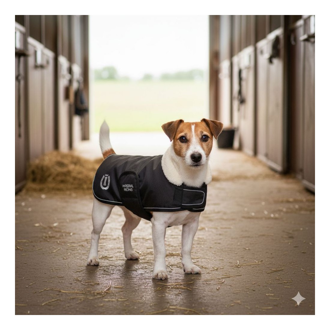 Le Manteau Jack Russell IRHFlower Power d’Imperial Riding est spécialement conçu pour les chiens petits, comme les Jack Russell. Son tissu imperméable protège efficacement contre les pluies légères, tout en offrant une coupe ajustée et élégante. Le modèle est proposé en taille XXS, adapté aux morphologies fines, avec une finition soignée qui apporte style et confort.