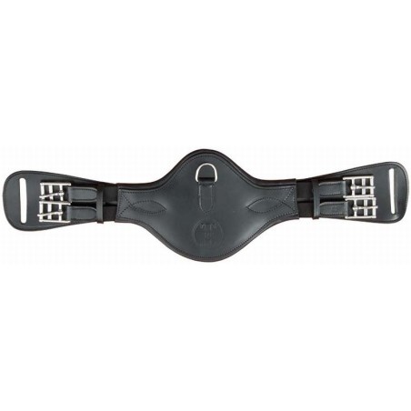 Sangle courte de dressage à la découpe anatomique, et en demi-lune, entièrement matelassée et doublée cuir.