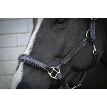 Das Lederhalfter hat ein anatomisch geformtes, unterlegtes Genickstück mit Verstellschnallen auf jeder Seite.