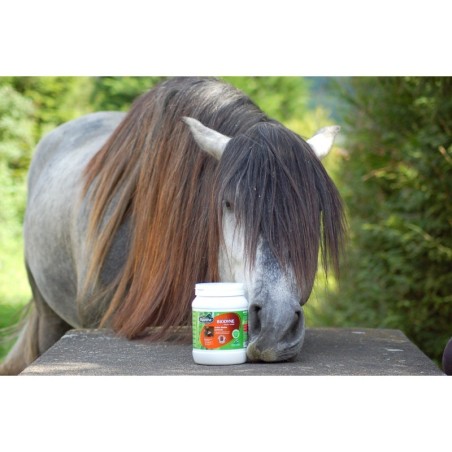 Es ist daher wichtig, Ihrem Pferd regelmäßig dabei zu helfen, diese Belästigungen zu bekämpfen, indem Sie seine Hufe pflegen. BIODYNE ist ein langfristig wirkendes Nahrungsergänzungsmittel, das alle notwendigen Elemente für die Gesundheit des Hufs liefert.