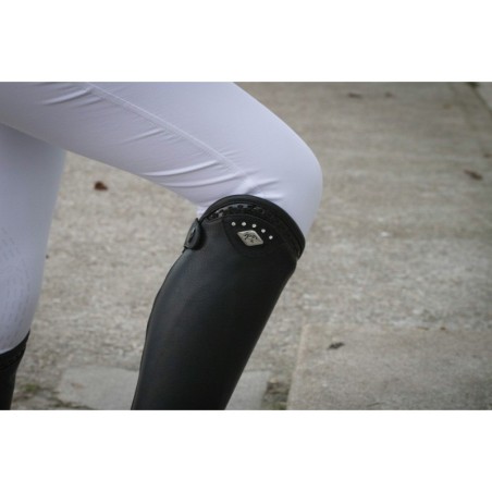 Minichaps aus schwarzem Kunstleder mit Reißverschluss und Details von Pénélope.