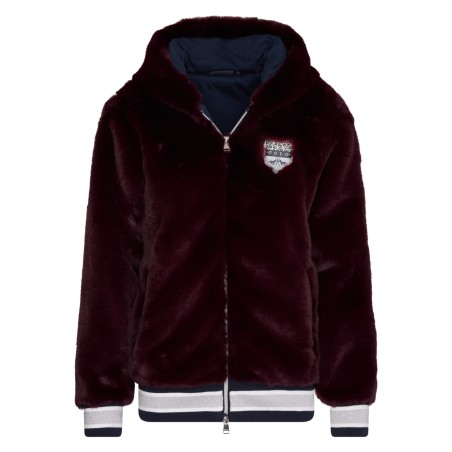 Der Rippenstrick an den Bündchen und am Saum ist mit farbigen Fäden durchzogen.