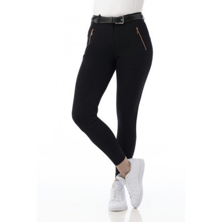 Taschen vorne und hinten, die mit kontrastierenden Metallreißverschlüssen geschlossen werden.