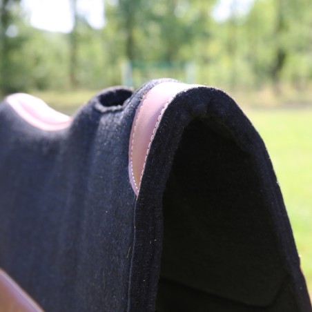 Komfort und optimaler Schutz Dieses Westernpad aus 20 mm Filz der Marke Valley Miles bietet eine außergewöhnlich stoßdämpfende Eigenschaft, um den Komfort Ihres Pferdes beim Reiten zu gewährleisten. Seine Lederverstärkungen sorgen für eine hohe Widerstandsfähigkeit und Haltbarkeit, selbst bei intensiver Nutzung.