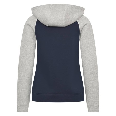 Llama la atención la manga raglán con 2 ribetes brillantes de fantasía.