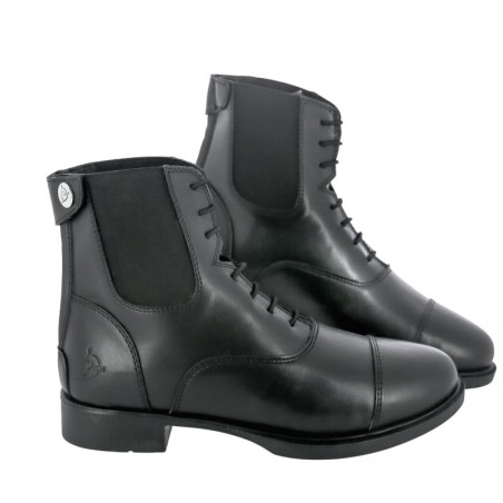 Estas prácticas botas de paddock y equitación combinan un aspecto de cordones con un cierre de cremallera en la parte trasera para ponérselas rápidamente. Fabricadas con un suave material sintético que imita el cuero, son fáciles de cuidar y siempre lucen como nuevas. Perfectas para el día a día e incluso para las competiciones.