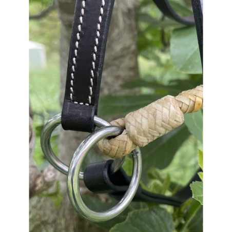 Fabricada con cuero crudo trenzado de alta calidad, esta brida ofrece un tacto suave y cómodo en el hocico de su caballo, al tiempo que garantiza un control preciso.