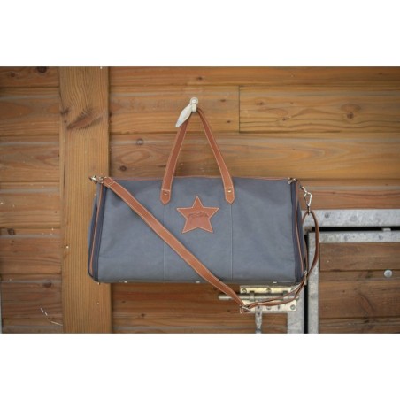 Bolsa de espectáculo Penélope para llevar todo el equipo del jinete. Contiene un gran bolsillo central para la chaqueta de concurso y otras prendas, 2 pequeños bolsillos de malla para accesorios, un espacio para el casco y un bolsillo para las botas u otro calzado.