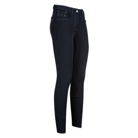 Confeccionado en tejido elástico con pedrería y costuras en contraste, trabillas resistentes.