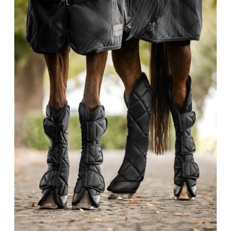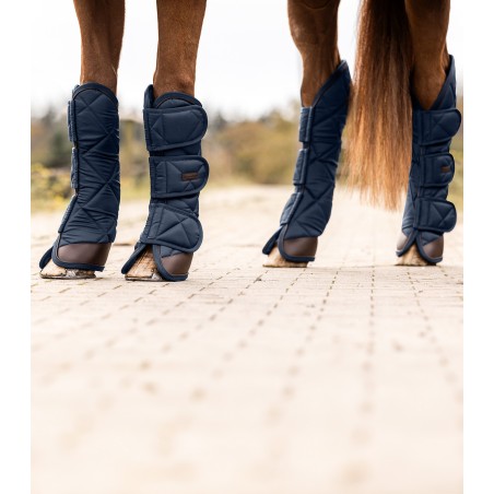 Polainas anatómicas con tres fuertes cierres de velcro para una sujeción óptima en la pata del caballo.