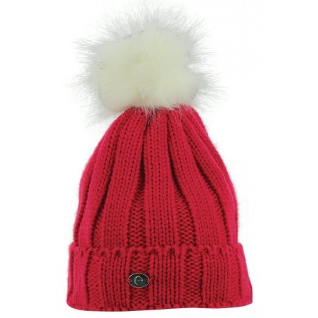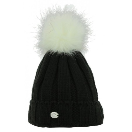 Cappello con ponpon in 100% acrilico, a coste larghe foderato al 100% in poliestere.
