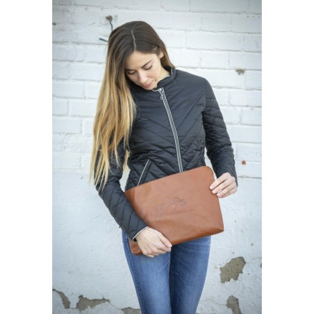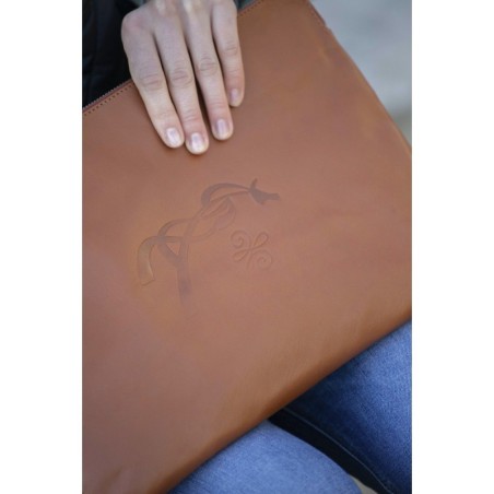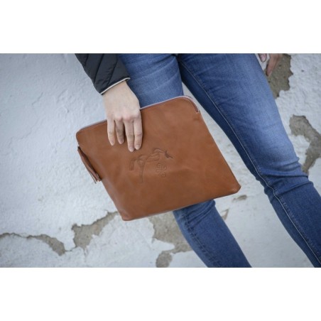 Custodia per computer con logo stampato davanti e anelli di attacco sul retro.