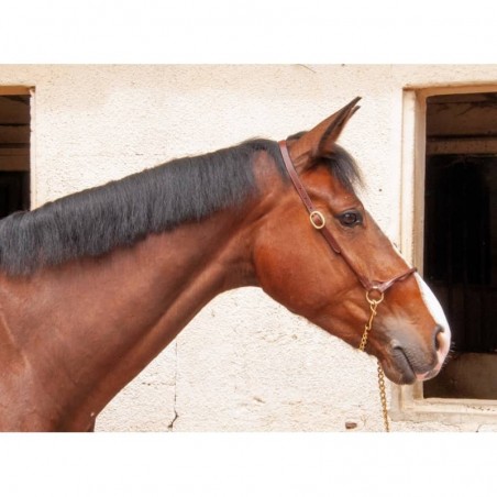 In pelle di bufalo rotonda su muso e montanti. La regolazione avviene tramite fibbia sulla testiera.