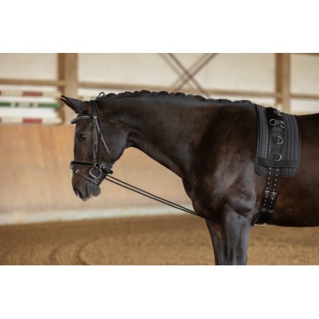 Aiuta il cavallo a tenere la testa bassa e a rimanere raccolto e arrotondato senza che il cavaliere perda la sensibilità delle redini.