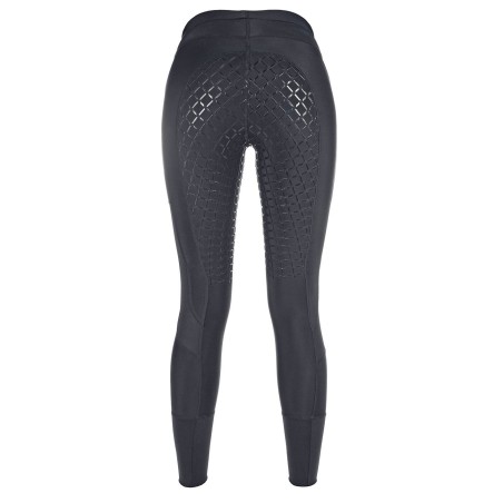 Il contenuto di elastan rende i gambali da equitazione bi-elastici e i polsini elasticizzati con inserti in maglia si adattano perfettamente alla gamba.