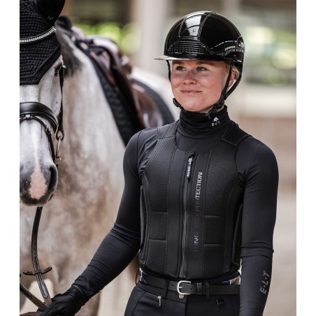 Il tessuto leggero, elastico e traspirante assicura il massimo comfort, per permettervi di concentrarvi completamente sull'attività equestre. La zip anteriore con cerniera SWING Safety si apre e si chiude senza sforzo, anche in caso di emergenza o quando si indossano i guanti.