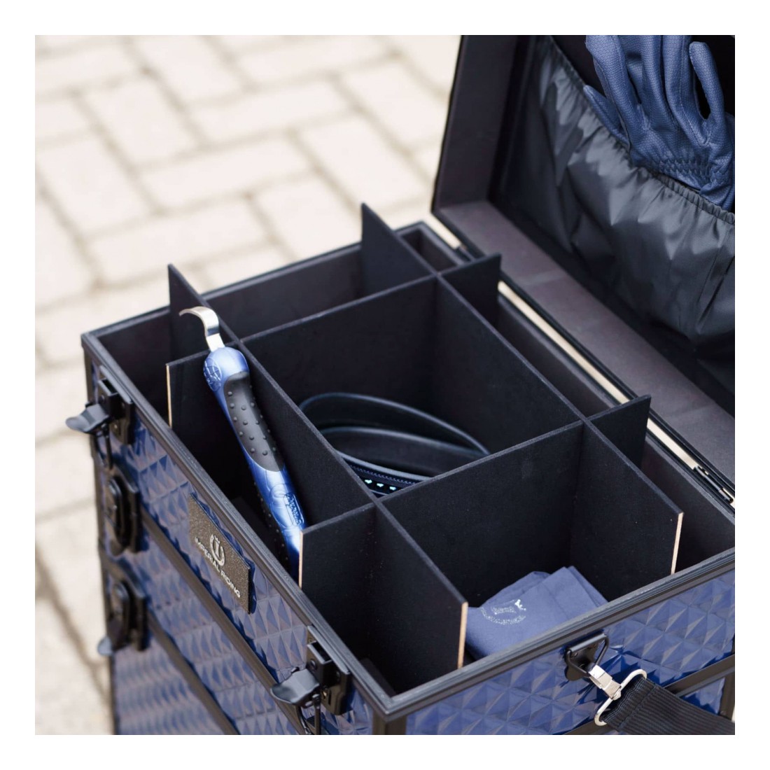 Il design robusto offre un'eccellente resistenza agli urti, mentre la tracolla lo rende facile da trasportare quando non è possibile cavalcare. Questa scatola è perfetta per organizzare le spazzole, i prodotti per la cura e gli accessori e per trasportarli con stile, sia nella scuderia che in fiera o per la cura all'aperto.