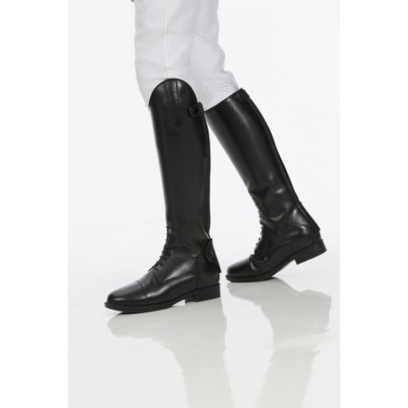 Laarzen van rundleer met elastische vetersluiting aan de voorkant.