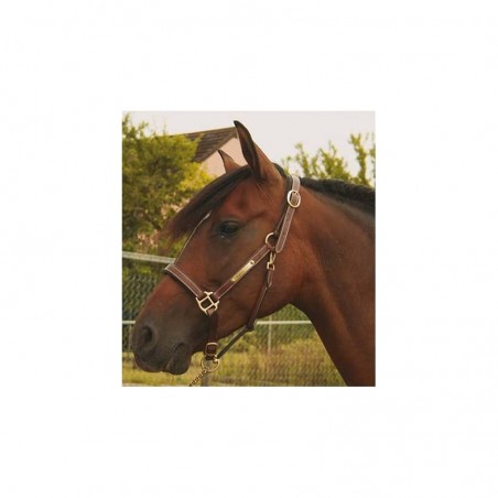 Dit gestikte leren halster heeft een plaatje zodat je de naam van je paard kunt laten graveren.