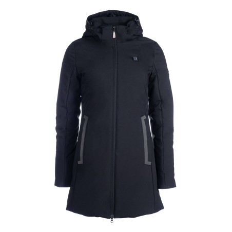 Functionele verwarmde jas voor vrouwen in elegante stijl. Met ingebouwde verwarmingsfunctie en temperatuur die van buitenaf instelbaar is.