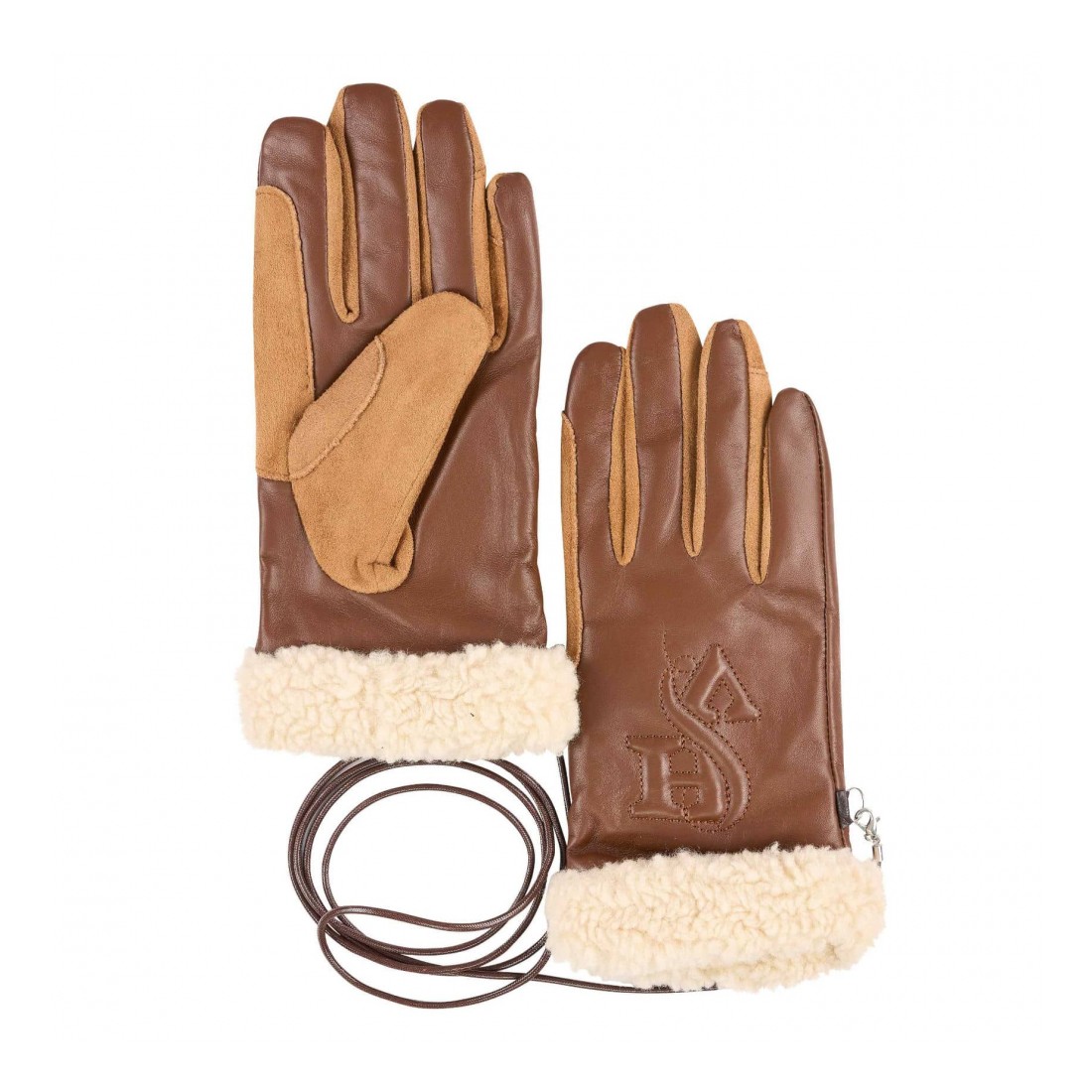 Gemaakt van echt leer en voorzien van volledig reliëfborduursel, een metalen klittenbandsluiting, een sherpa manchet en geleidende uiteinden voor telefoongebruik