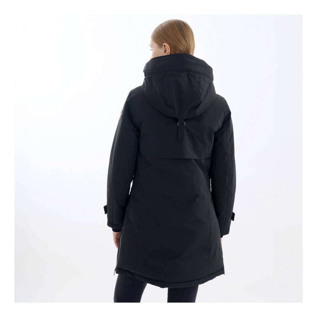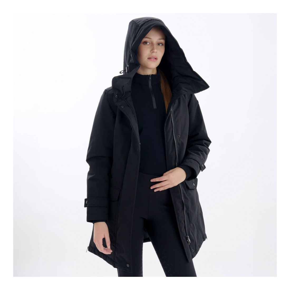 De ES-Mia jas, ontworpen voor ambitieuze ruiters die op zoek zijn naar prestaties en elegantie, combineert op ingenieuze wijze superieure functionaliteit met een strak ontwerp. Deze royaal gewatteerde parka biedt onvergelijkbare warmte, essentieel voor lange dagen op de manege of winterse uitstapjes. Met zijn hoge kraag en verstelbare capuchon biedt de ES-Mia jas effectieve bescherming tegen de elementen. De volledig gelaste naden garanderen volledige waterdichtheid, terwijl de tweewegritssluiting met kinbeschermer maximaal comfort biedt, zowel te paard als te voet. Discreet versierd met de euro-ster badge op de mouw, belichaamt het zowel eigentijdse stijl als een toewijding aan hippische uitmuntendheid.