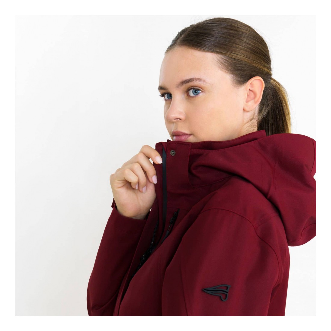 Ontdek onze korte waterdichte jas voor dames, ontworpen voor ruiter-elegantie, met volledig gesealde naden, een winddicht ritspaneel en een afneembare capuchon. Verstelbare manchetten en zakken met rits zorgen dat functionaliteit en stijl hand in hand gaan. Verfraaid met ES borduursel en paardenhoofddetail voor een gedistingeerde look.