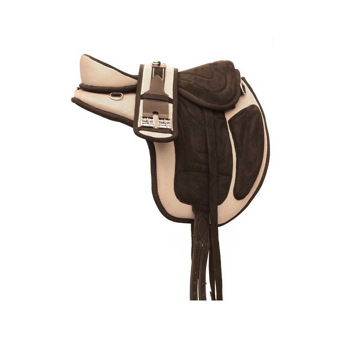 Zonder stijve structuur (boom) past het zich zachtjes aan de lichaamsvorm van het paard aan, terwijl het de rug ontlast door het gewicht van de ruiter gelijkmatiger te verdelen. Dit model heeft een aanzienlijke lichtheid, ideaal voor lange periodes in het zadel, en een soepelheid die de rug en bewegingsvrijheid van het paard respecteert.