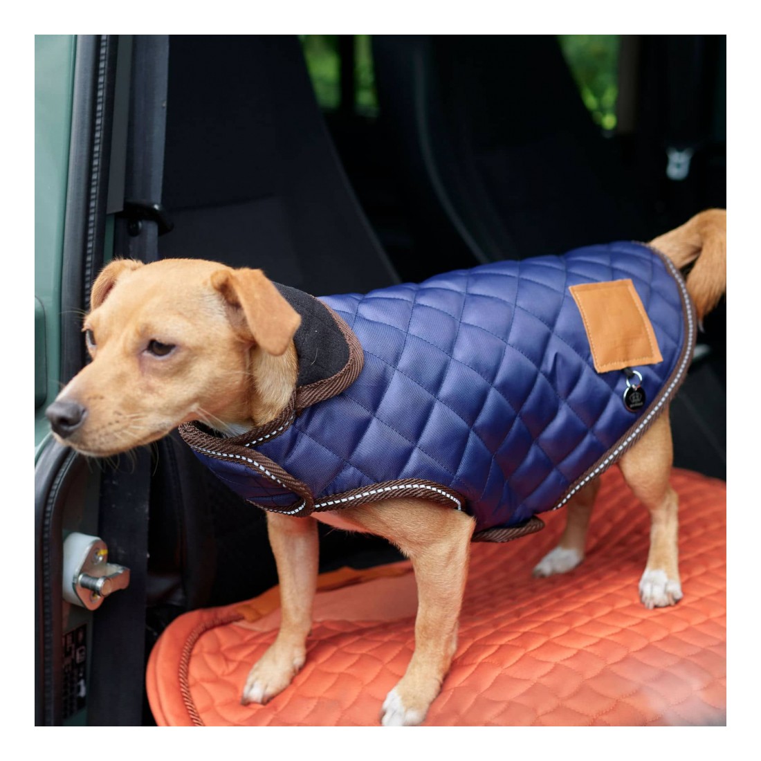 Mslijtvaste hondenjas van waterafstotend 420D polyester met ruitpatroon en zachte fleece voering voor extra comfort.