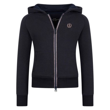 Blijf warm en stijlvol in onze ruiter hoodie. Met een zacht geborstelde binnenkant, duimgaten aan de manchetten en een artistiek glitterontwerp is deze hoodie perfect voor elke paardenliefhebber
