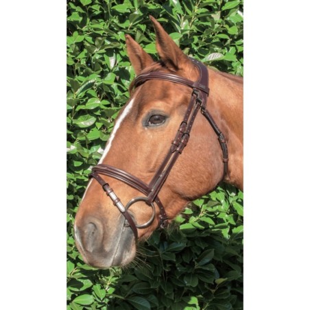 Roestvrijstalen gespen, witte stikseldetails op neusriem en neusriem.