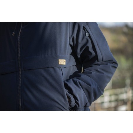 Navy gedeelte met valse centrale zak en een zak met rits aan elke kant.
